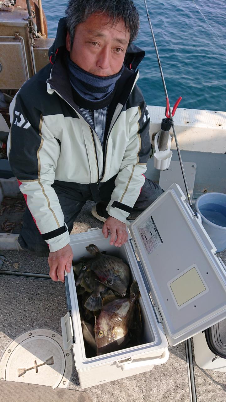 2月2日カワハギ釣りに大型交じりで好調でした。朝はやや食いが悪かったがその後良かったです。