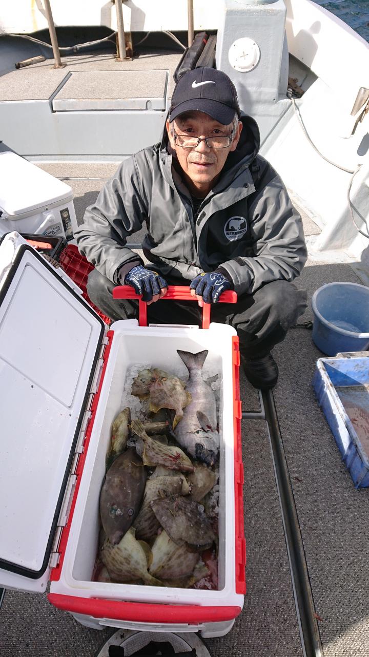 11月11日カワハギ釣りにサンバソウ交じりで釣る人40匹。